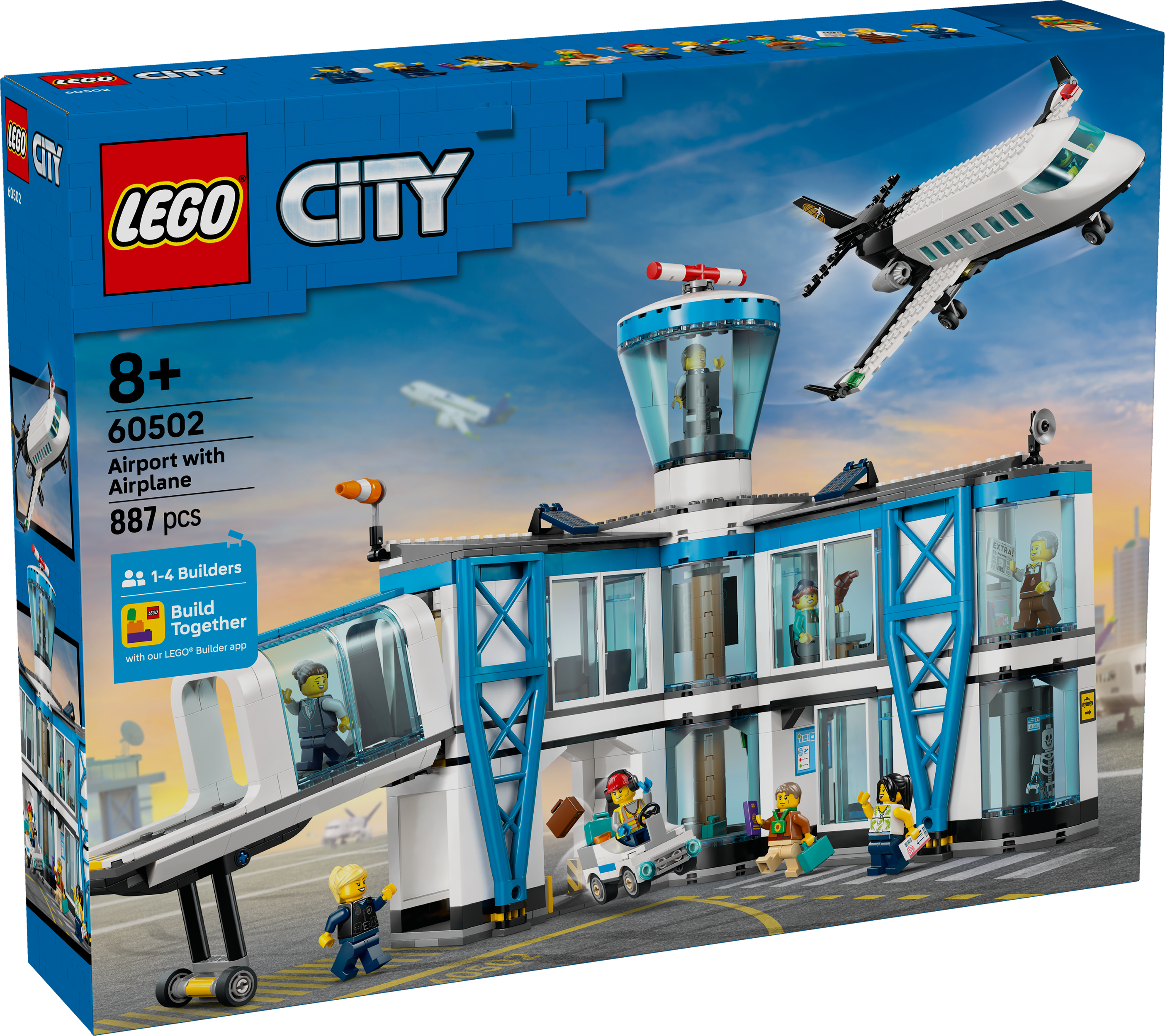 - MODEL AIRPORT – Kids’ play will take flight with this Build Together LEGO® City Airport with Airplane playset (60502) for ages 8+, including an airport terminal, passenger airplane and 9 minifigures