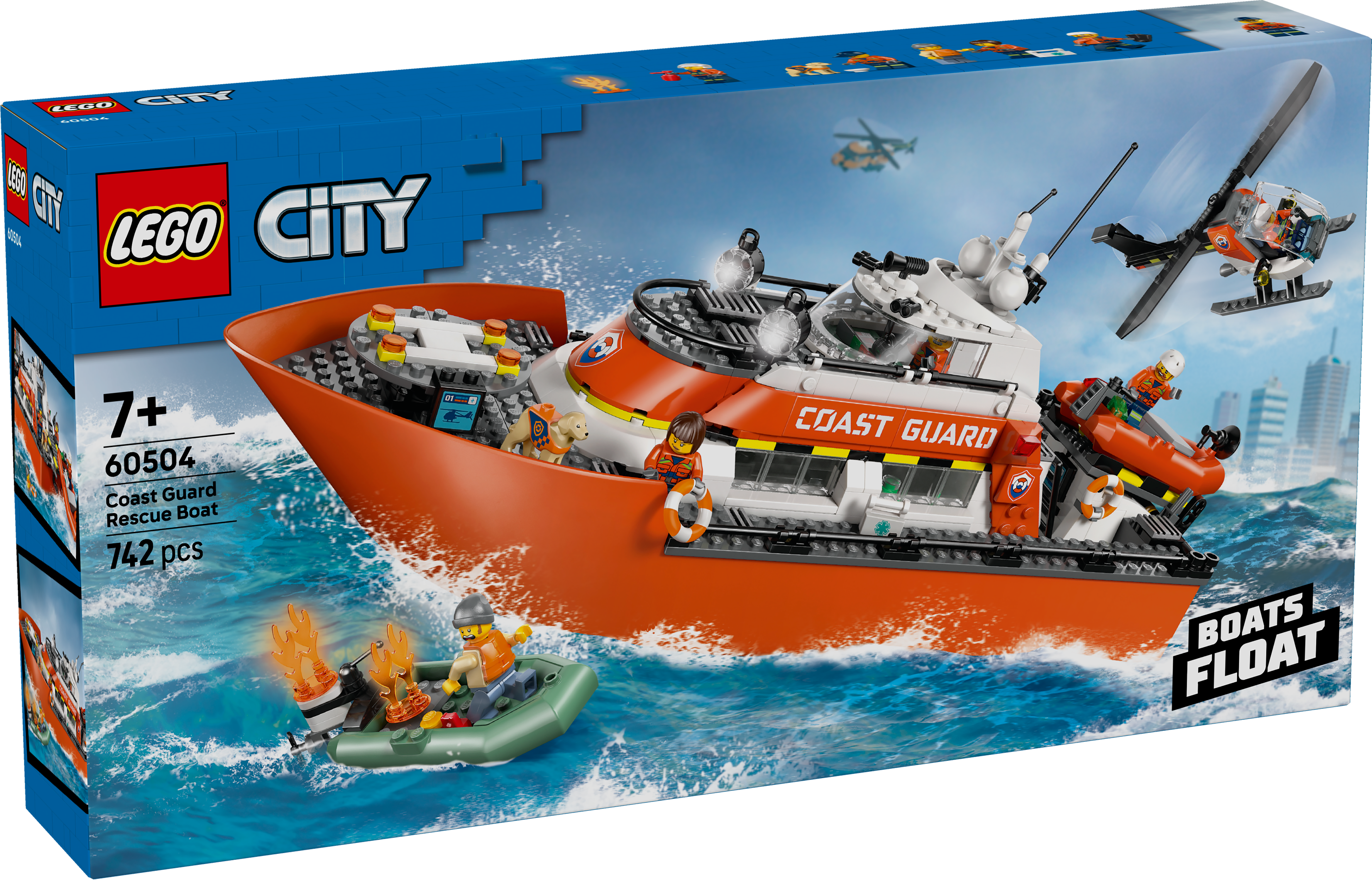 • WHAT’S IN THE BOX – Includes everything kids needto build a floating LEGO® coast guard patrol boat, toy rescue helicopter and 2 floating dinghies, plus 5 minifigures and a dog figure