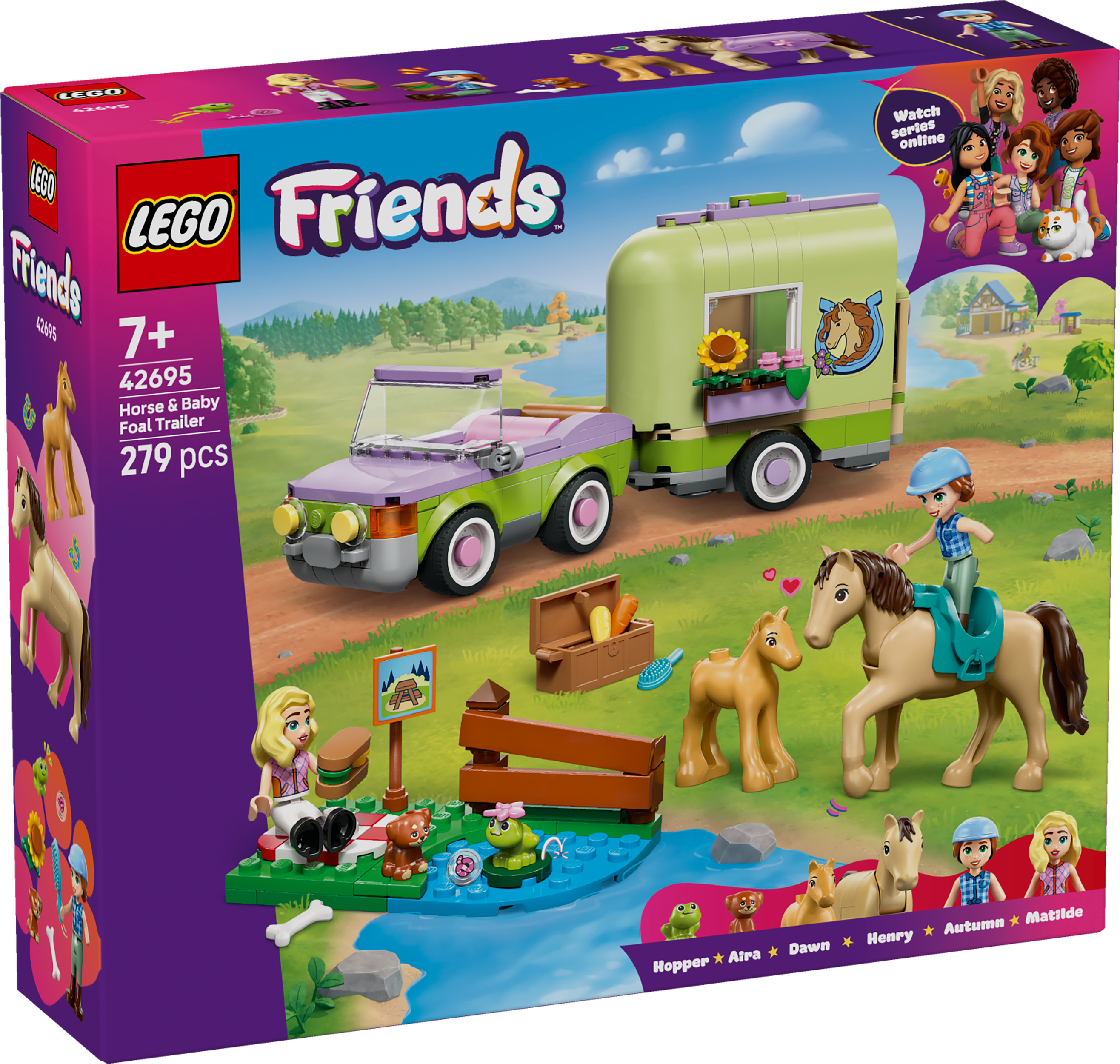 - 2 LEGO® FRIENDS CHARACTERS – This detailed LEGO Friends Horse & Baby Foal Trailer (42695) pretend play set comes with Autumn and Matilde minidolls to inspire stories about their passion for horses
