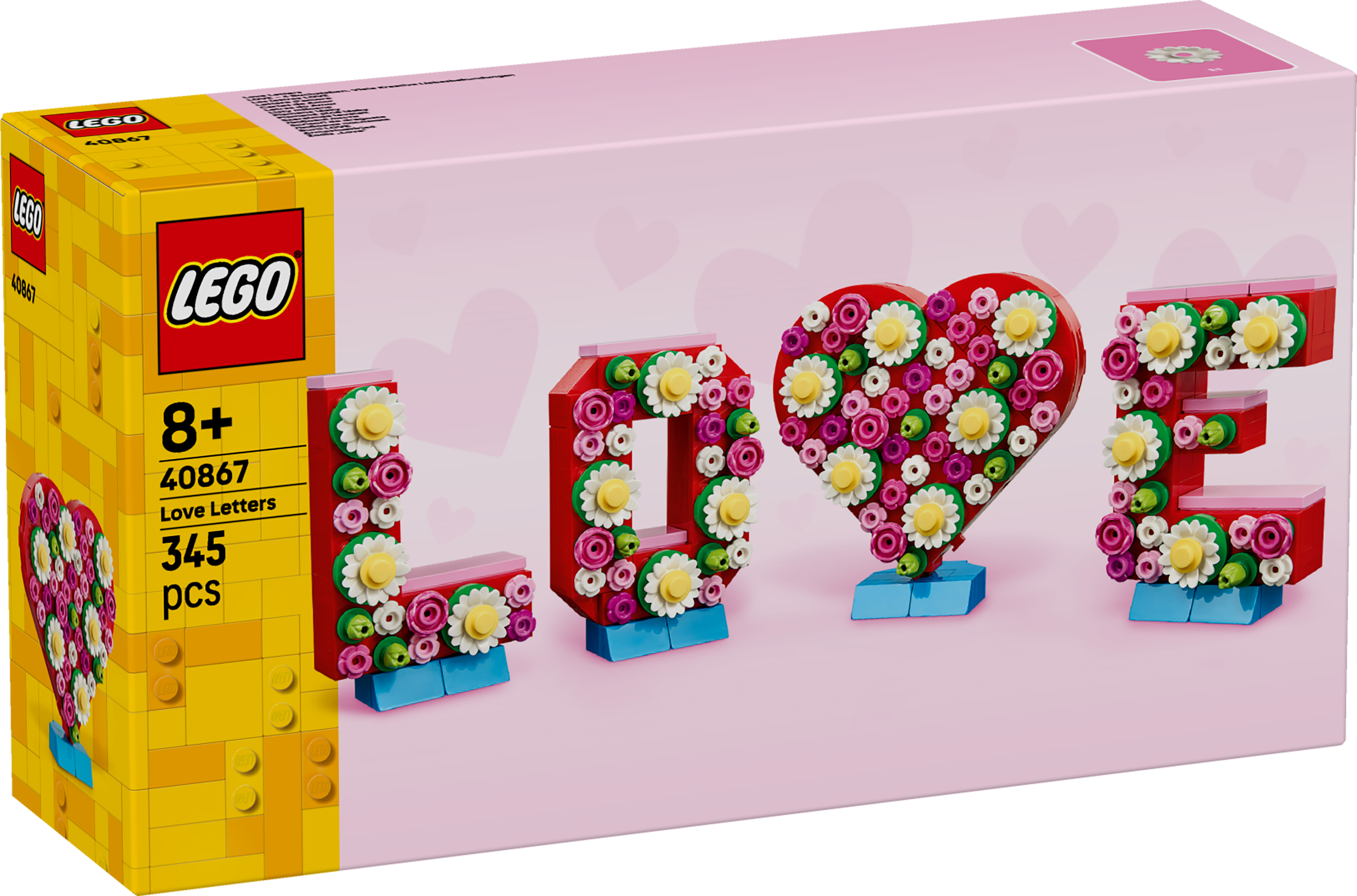 Let kids fill the home with love decorations using the LEGO® Love Letters (40867) heart decor building toy. This cute piece of home decor is a charming way to celebrate Valentine's Day, Mother’s Day or Father’s Day. It also makes for a fun DIY artproject for creative girls and boys ages 8 and up. Kids who love Valentine’s crafts can build the letters spelling out “love”, the “V” represented by a buildable heart. Or they can rebuild the letters to read “I ’heart’ U”. Then customize the letters u sing flower accessories. The letters bring a pop of pink and red to decorate a living room, bedroom or any shelf space. This LEGO love set makes a great love gift kids can give their parents. Or it can be given to creative kids who enjoy seasonal art and crafts as a Valentine’s Day decoration. Kids can enjoy intuitive building with the LEGO Builder app, zooming and rotating with 3D instructions, while saving and tracking progress – all from the app. Set contains 345 pieces.