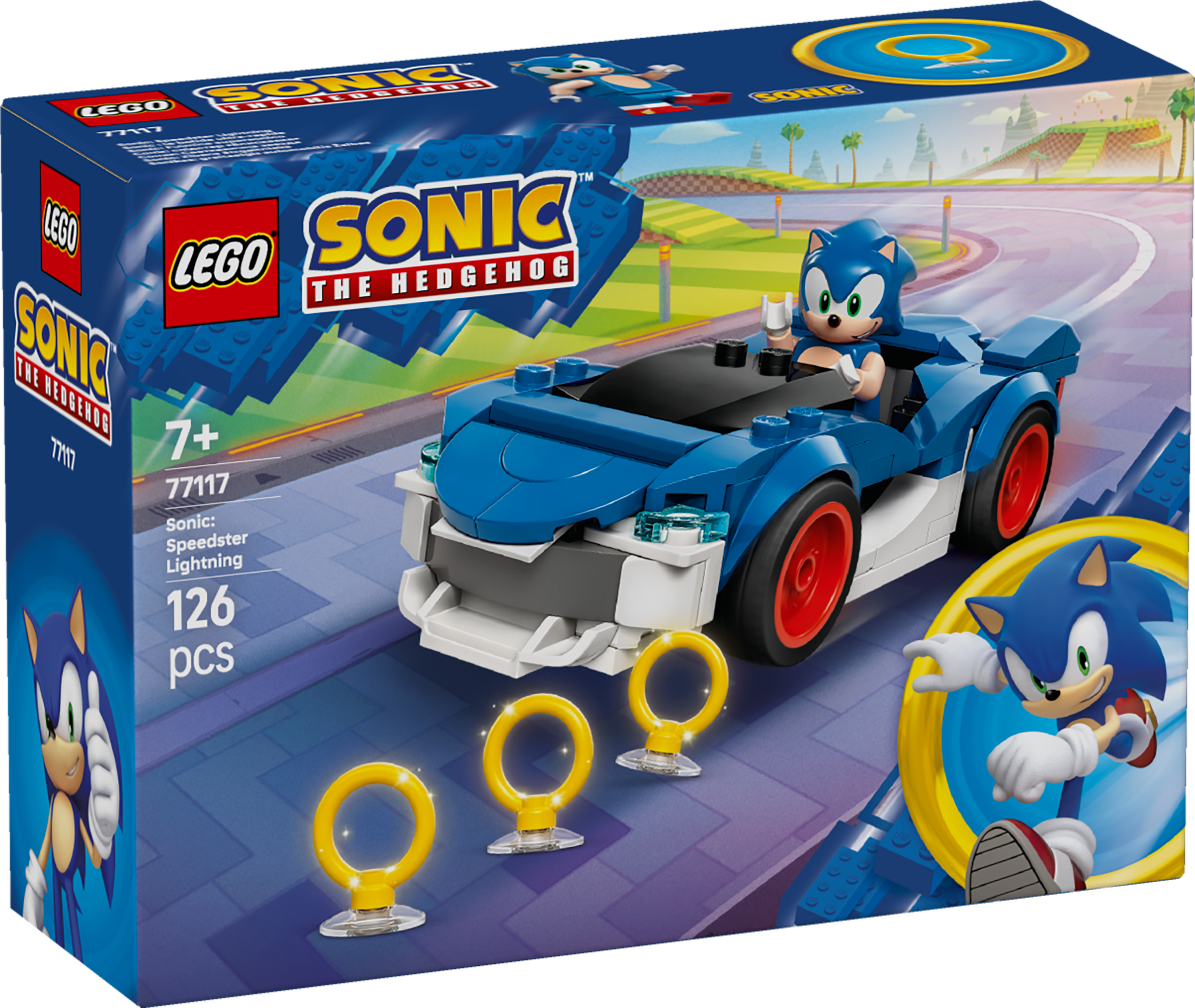 Fast-paced, race car adventures await kids ages 7 and up in this LEGO® Sonic the Hedgehog™ Sonic: Speedster Lightning (77117) building toy set. Based on the Sonic Racing: CrossWorlds console video game, boys, girls and gaming fans can race around and collect the 3 Gold Rings with a Sonic minifigure with mischievous face decoration. The blue-and-white interactive toy vehicle in this LEGO gaming set features wide, red-rimmed tires and an opening hood that reveals a hidden Chaos Emerald gem. Thiscollectible Sonic gaming merch makes a fun birthday or anytime gamer gift. Add it to other LEGO Sonic the Hedgehog™ playsets in the range (all sold separately) to extend the action and adventures. Plus, kids can build with confidence using the LEGOBuilder app, zooming and rotating with 3D instructions, while saving and tracking progress – all from the app. Set contains 126 pieces.