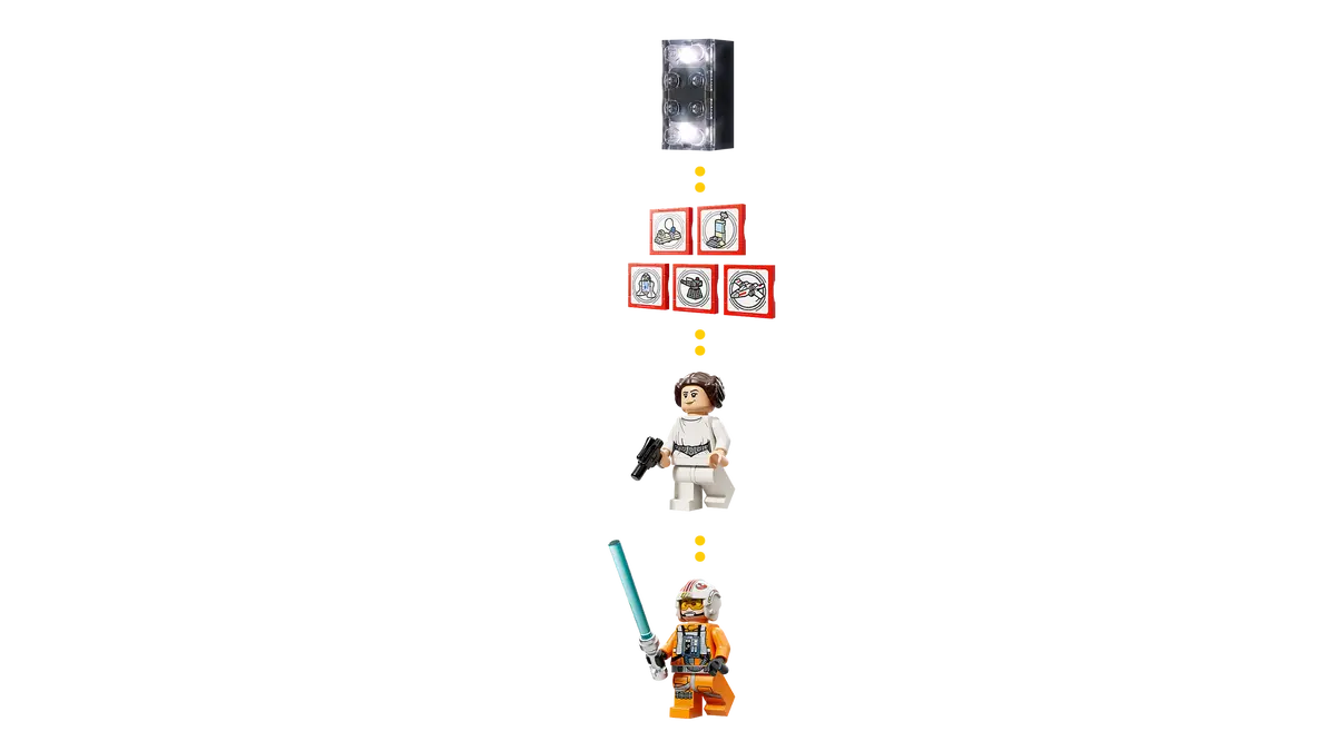 • 5 SMART TAGS – SMART Tags for the X-wing, Imperial turret, transporter, command center and R2-D2 activate the SMART Brick with dynamic sounds and lights in response to how kids move and play