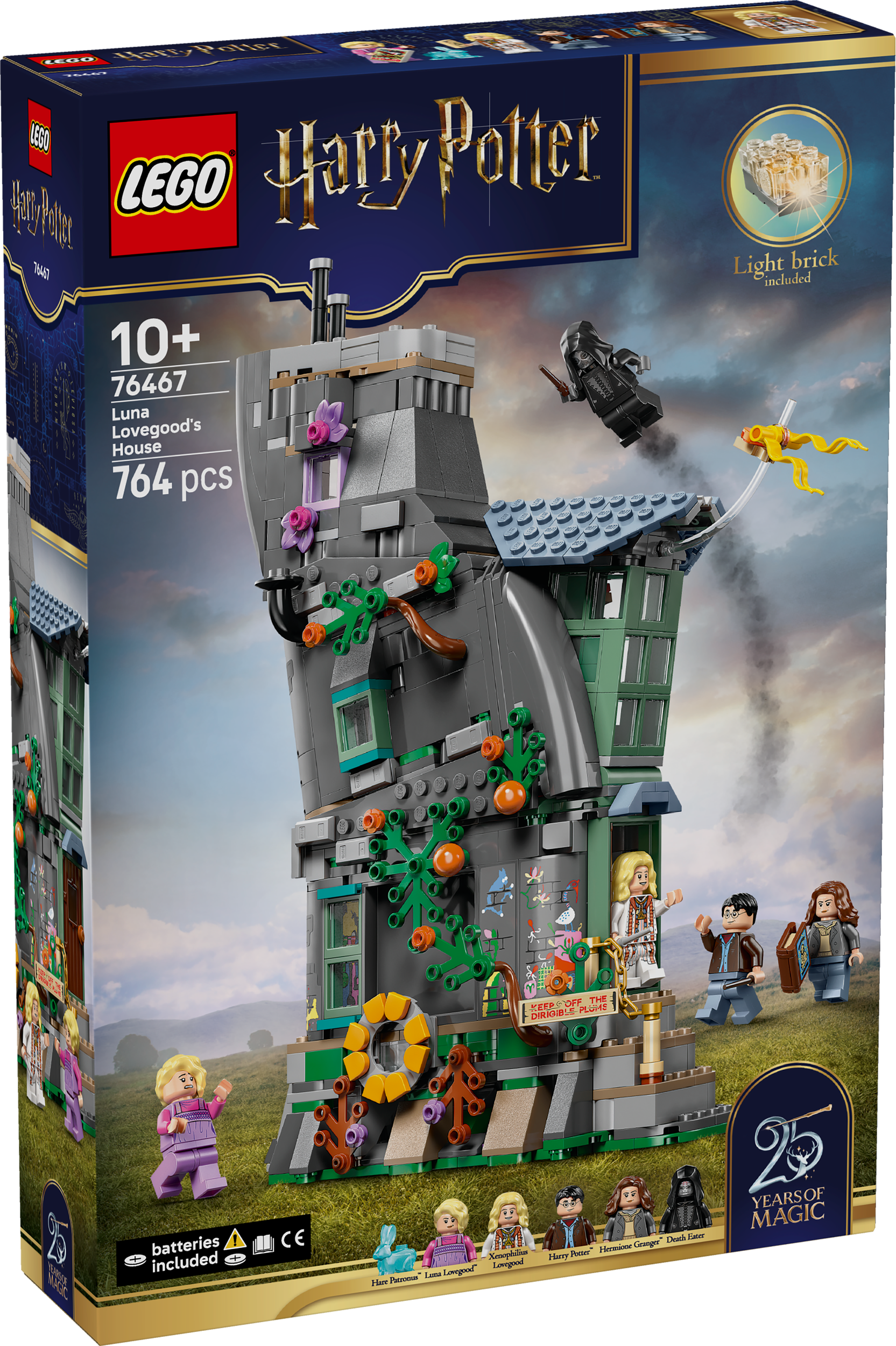 - 5 LEGO® HARRY POTTER™ MINIFIGURES – Luna Lovegood™, Xenophilius Lovegood, Harry Potter, Hermione Granger™ and a Death Eater, each with a wand, plus a collectible 25th anniversary Hare Patronus™