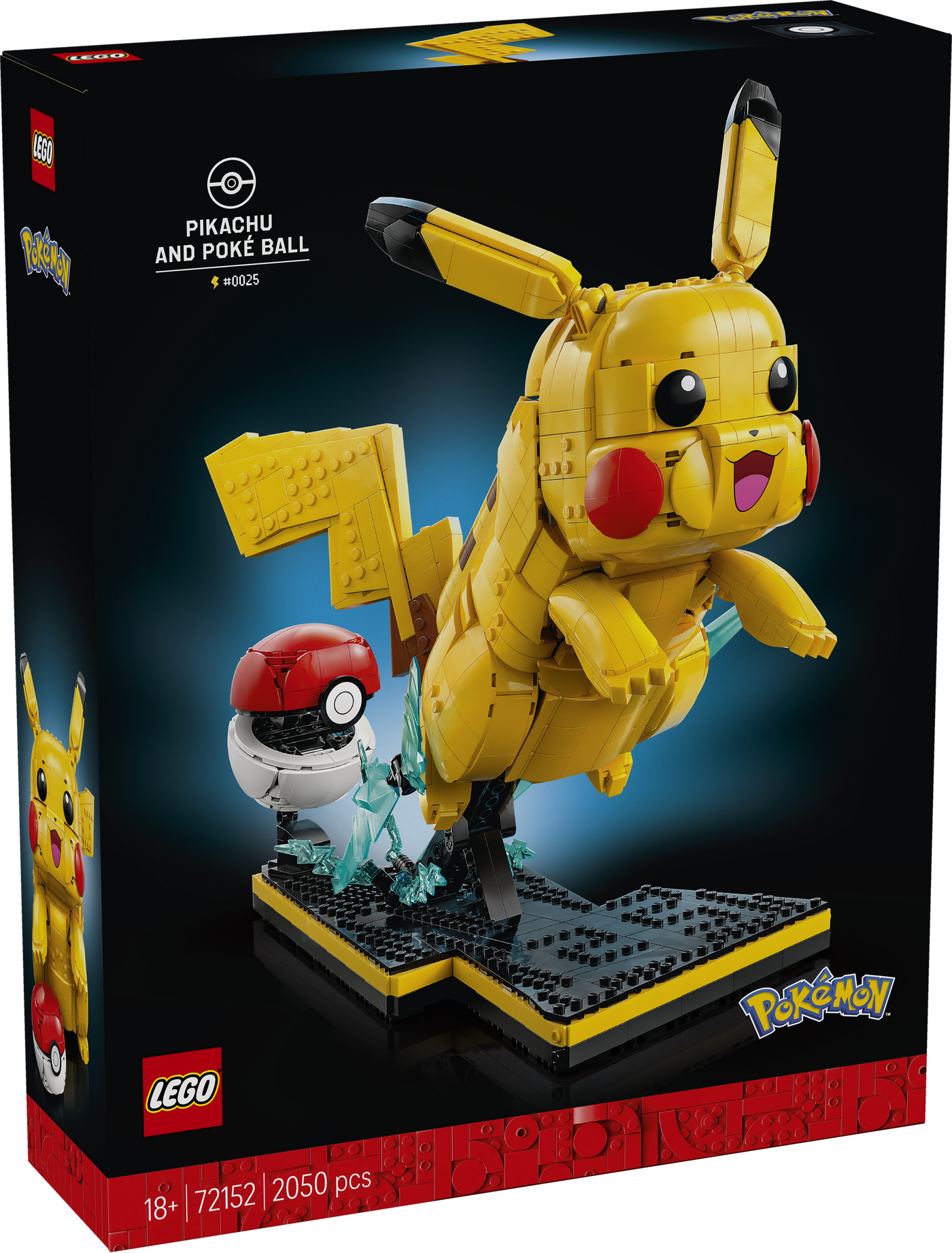 A colorful piece of gaming room decor, this yellow Pikachu model, with its black ear tips and red cheeks, has a tail that can be built to show it in male or female version. Other iconic details include lightning sparks symbolizing the energy stores of this Electric-type Pokémon and the “25” incorporated on the display base as a nod to Pikachu’s Pokédex number. The posable figure can be displayed in adynamic battle stance launching from the opened Poké Ball, which can also be displayed closed when the Pikachu figure is in resting pose. Enjoy enhanced building with the LEGO Builder app, zooming and rotating your build, while saving and tracking progress.