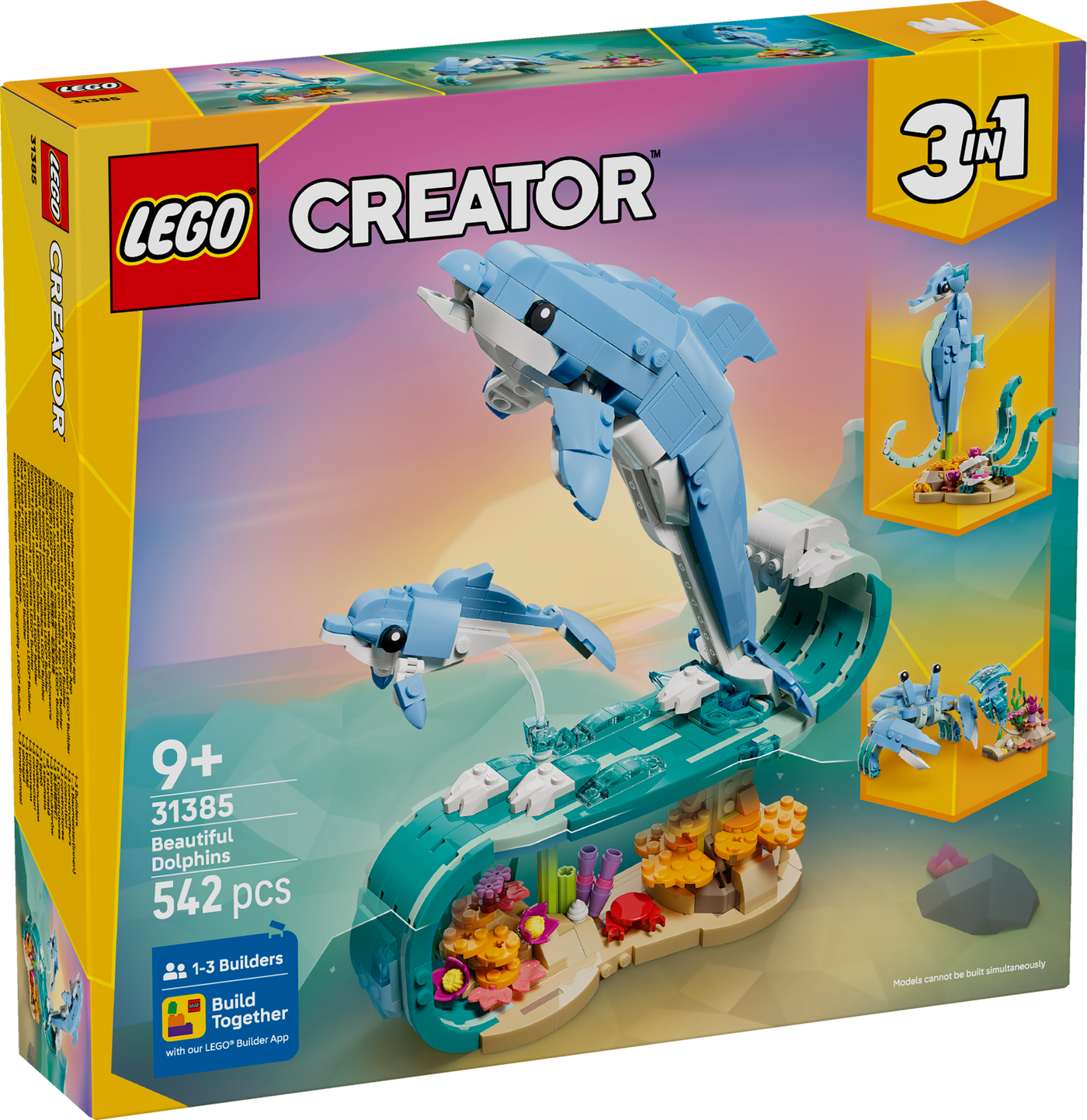 - 3 IN 1 ANIMAL FIGURE – LEGO® Creator 3 in 1 Sea Animals: Beautiful Dolphins (31385) building toy lets girls, boys and kids ages 9 and up build and rebuild 3 ocean toys with the same bricks