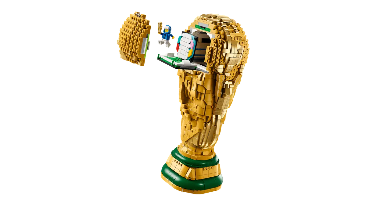 - SOCCER SCENE – There’s a hidden compartment in the upper globe section that reveals an exclusive FIFA World Cup 2026™ branded minifigure holding a mini FIFA World Cup 2026™ trophy