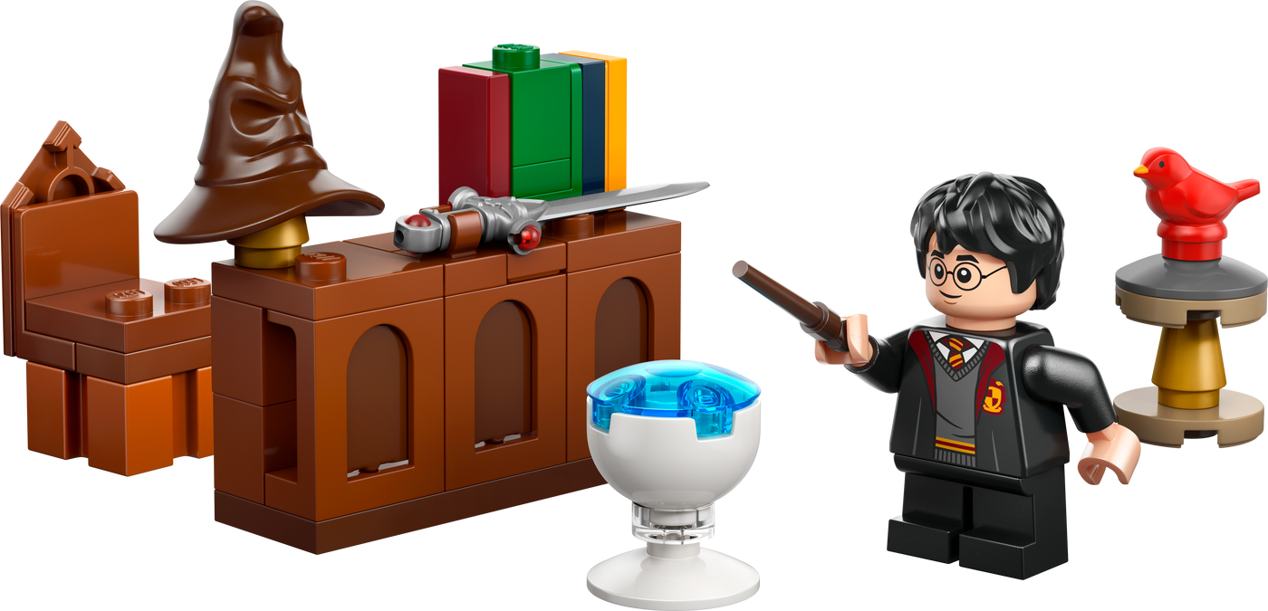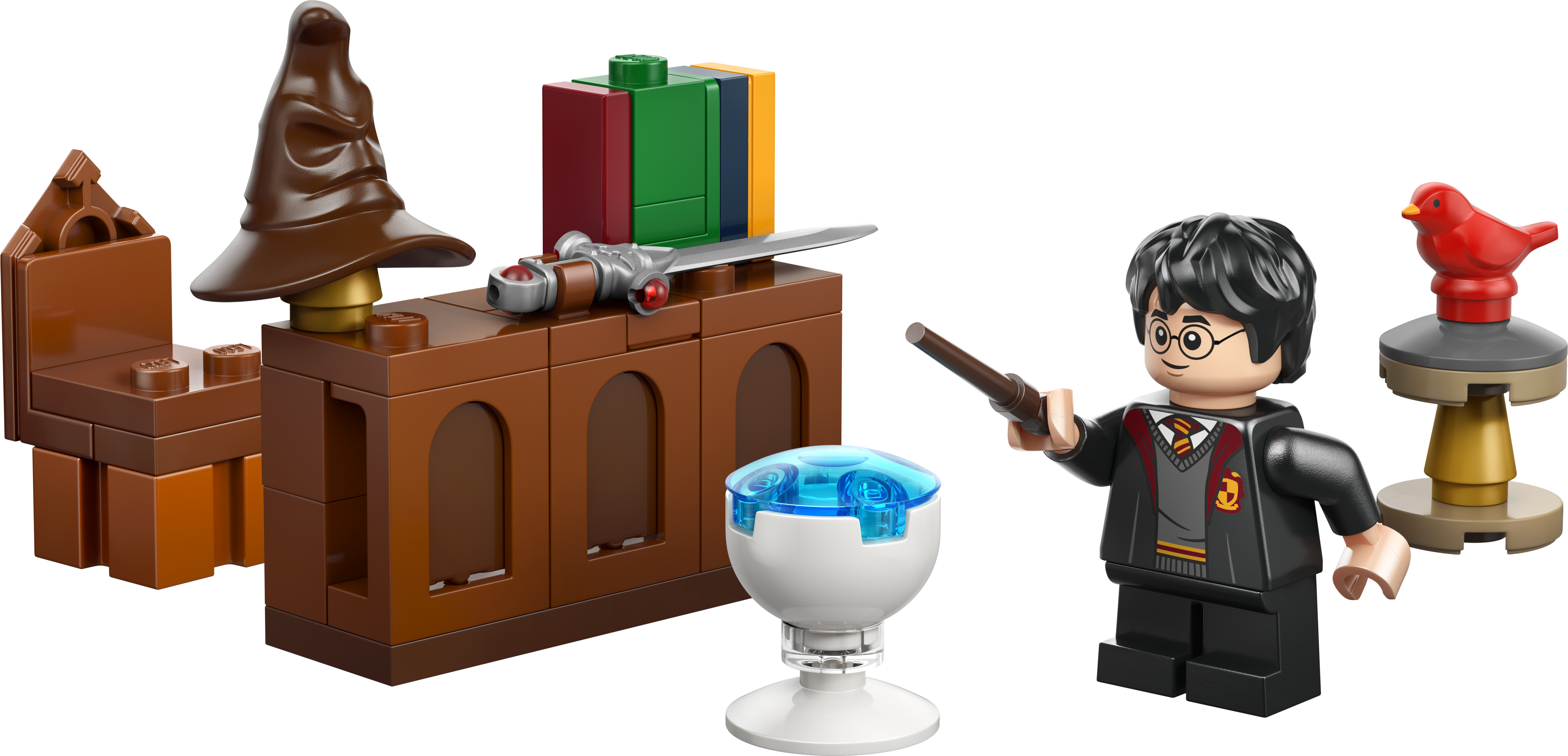 Play out magical scenes in Dumbledore’s office with Harry Potter™, the young Fawkes™ and accessories including the Sorting Hat™, Pensieve™ and the Sword of Gryffindor™.