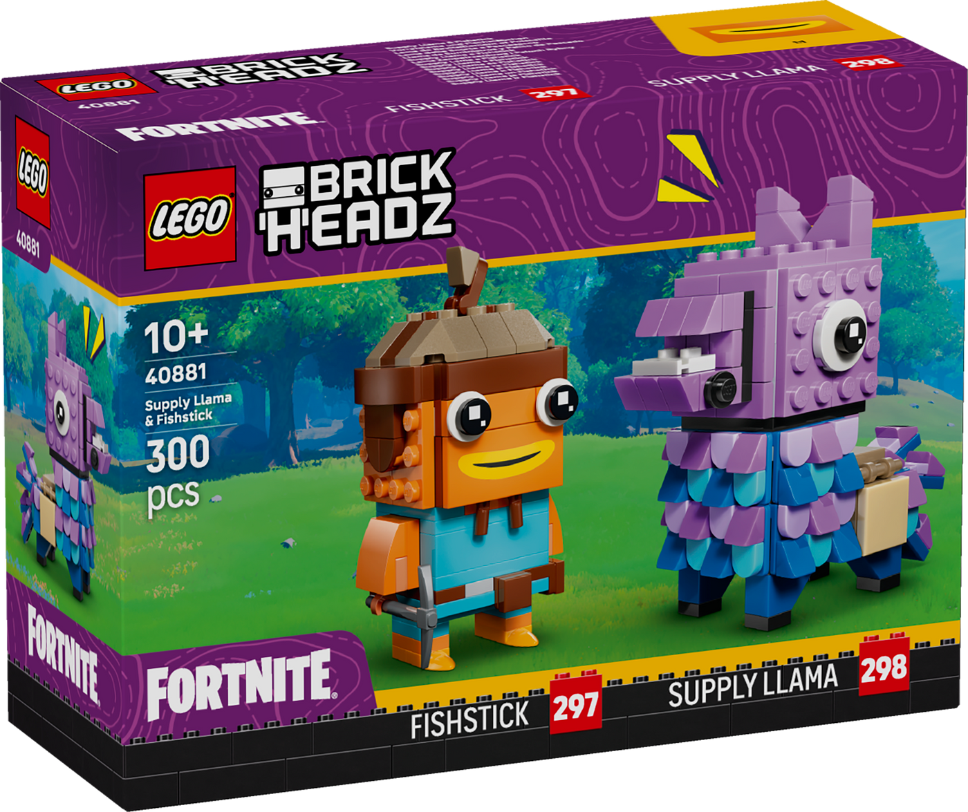 - VIDEO GAME COLLECTIBLES – Add to your video game merch collection with this LEGO® Fortnite® BrickHeadz™ Supply Llama & Fishstick Figures (40881) building set for boys, girls and kids ages 10 and up