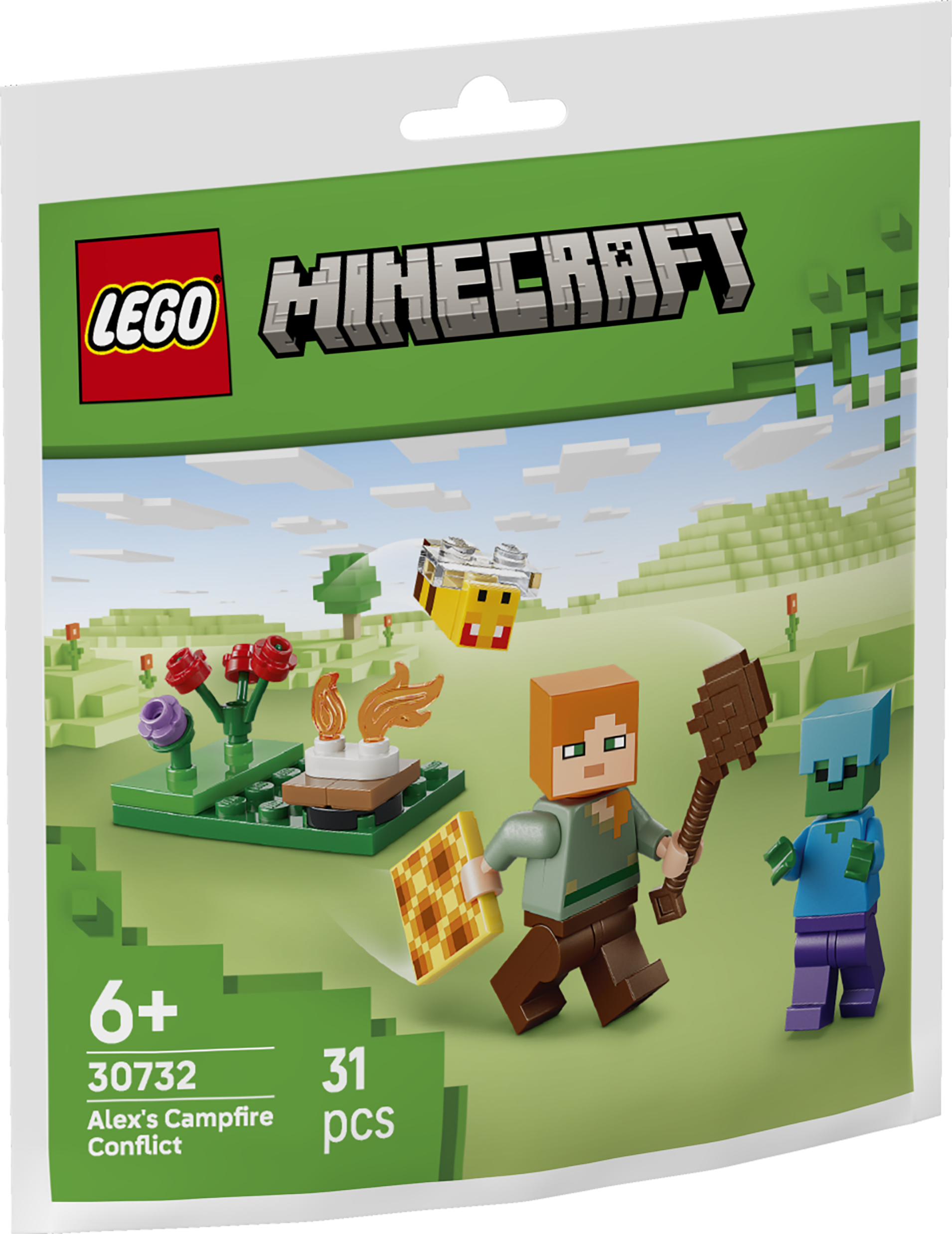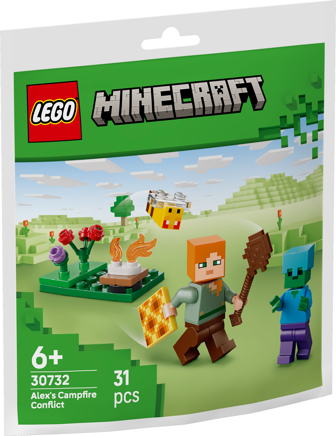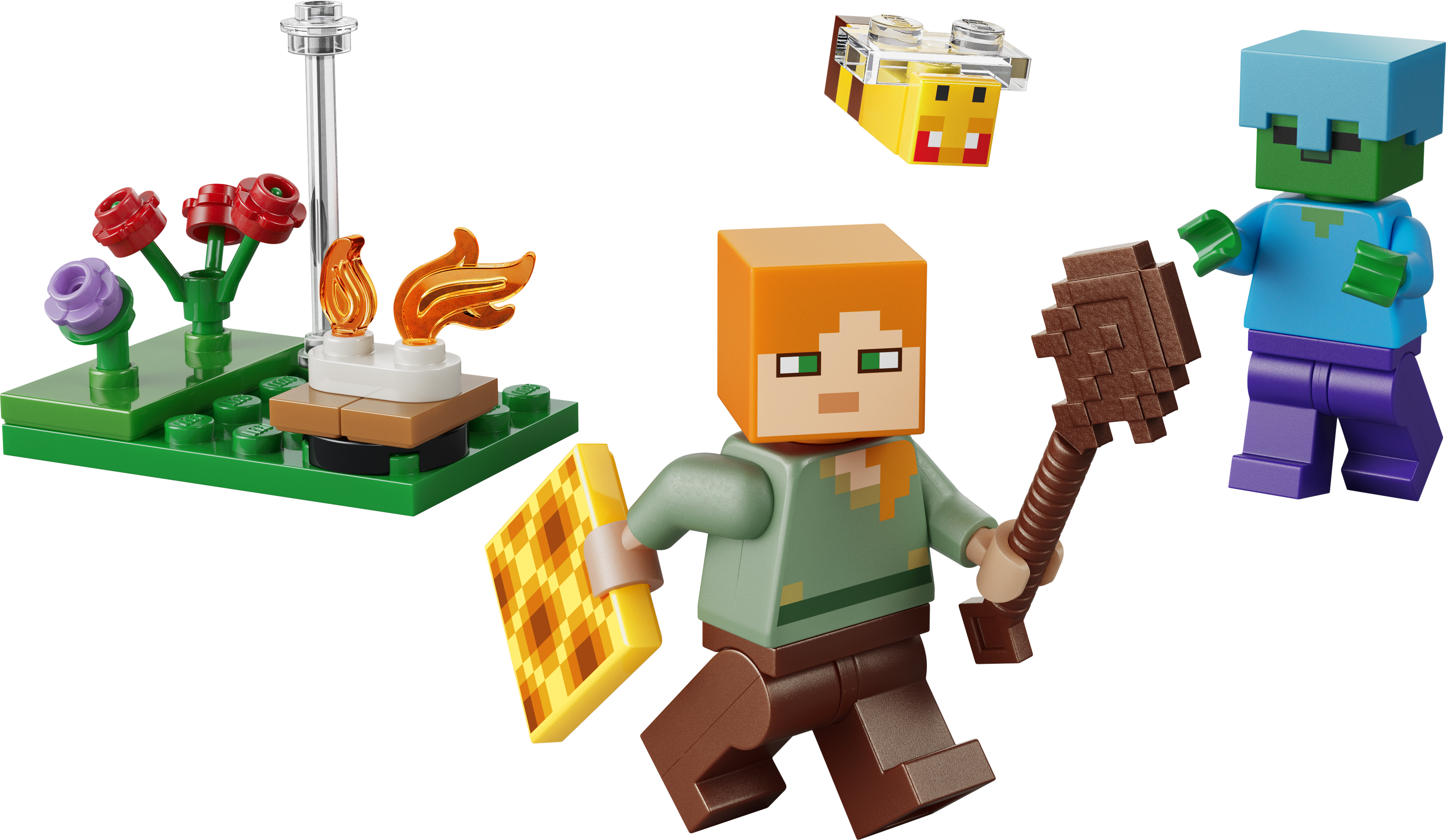 Alex is in a pretty field building a campfire and planting flowers with his spade. But watch out – while Alex fends off an angry bee, a zombie is also preparing to attack!