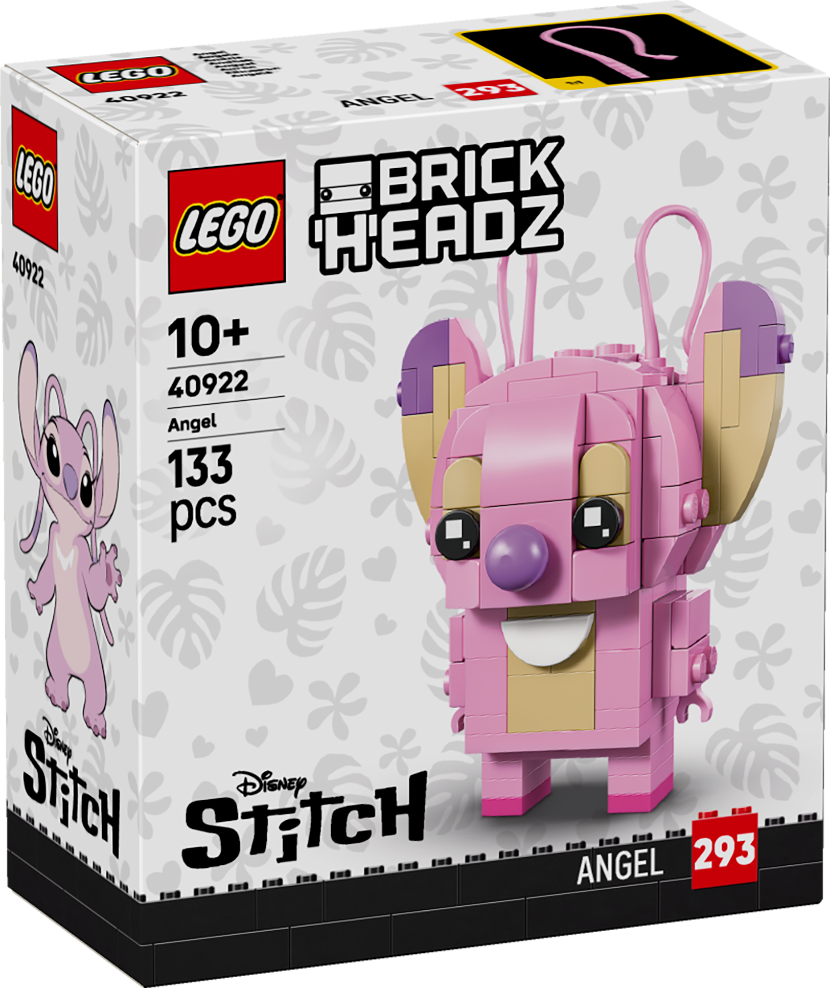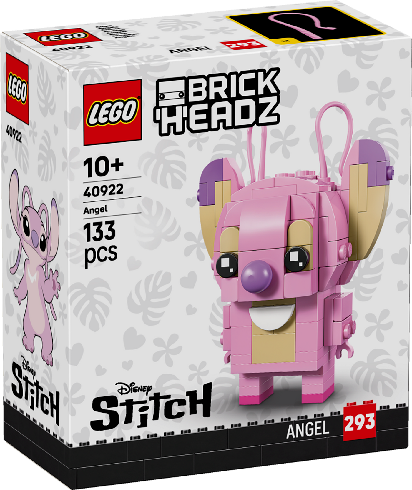 Treat kids with this cute LEGO® BrickHeadz™ Lilo & Stitch: Angel (40922) building toy. Fans can act out Lilo & Stitch moments with this brick-built movie model that features Angel’s signature large ears and tail. They can also display this building toy alongside other collectible LEGO BrickHeadz sets (sold separately) using the included sturdy baseplate. This small LEGO building kit is a great gift-giving choice for girls and boys aged 10 years old and up, or any Disney fan. Contains 133 pieces.